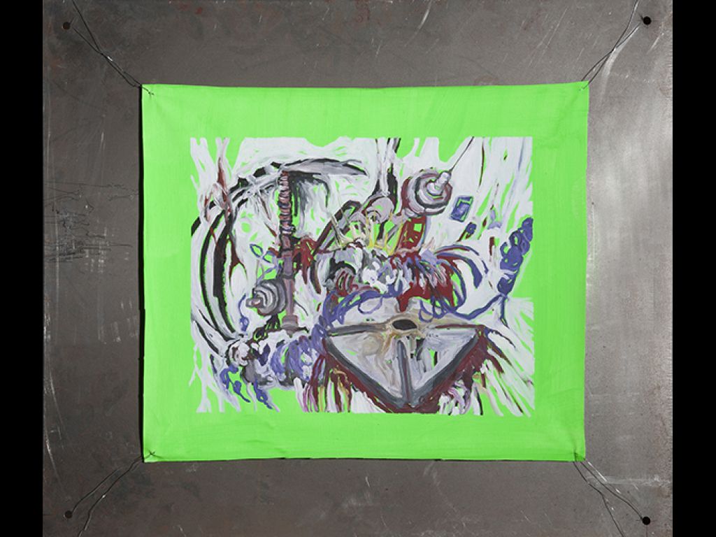 óleo sobre tela e arame sobre chapa de aço e ferrugem