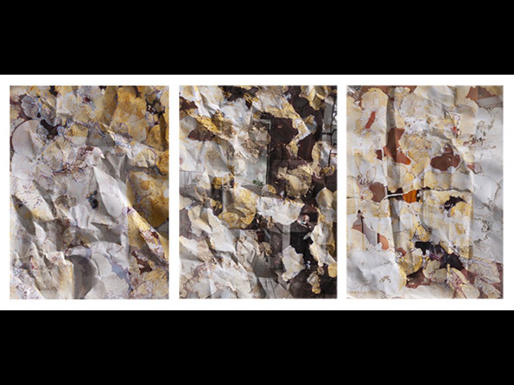 impressão fotográfica sobre papel, argamassa e técnica mista