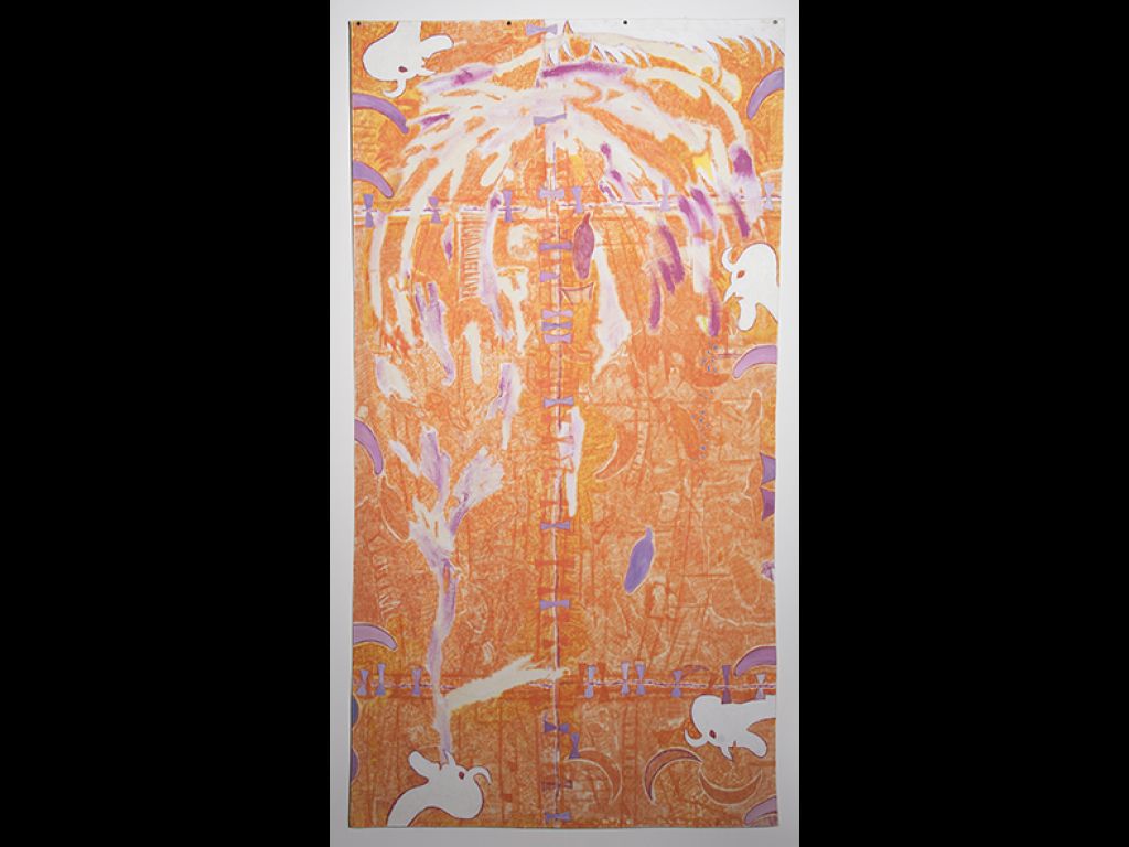 acrílica, bastão oleoso, tinta automotiva e óleo sobre tela
