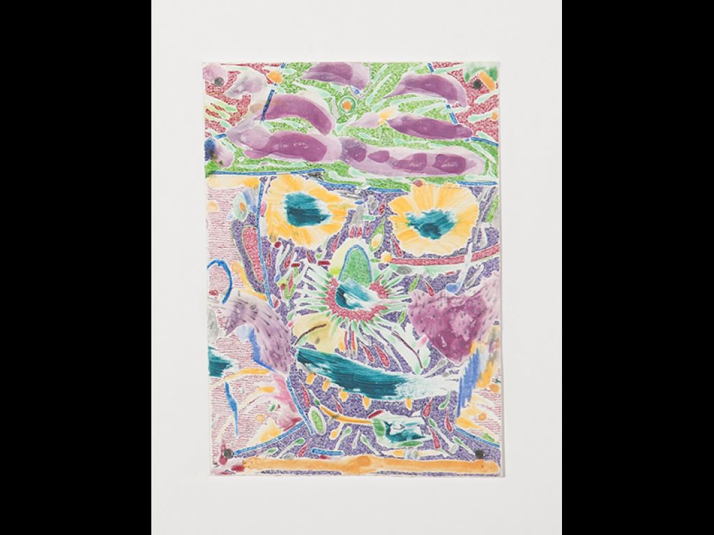 acrílica, bastão oleoso, lápis de cor e guache sobre papel