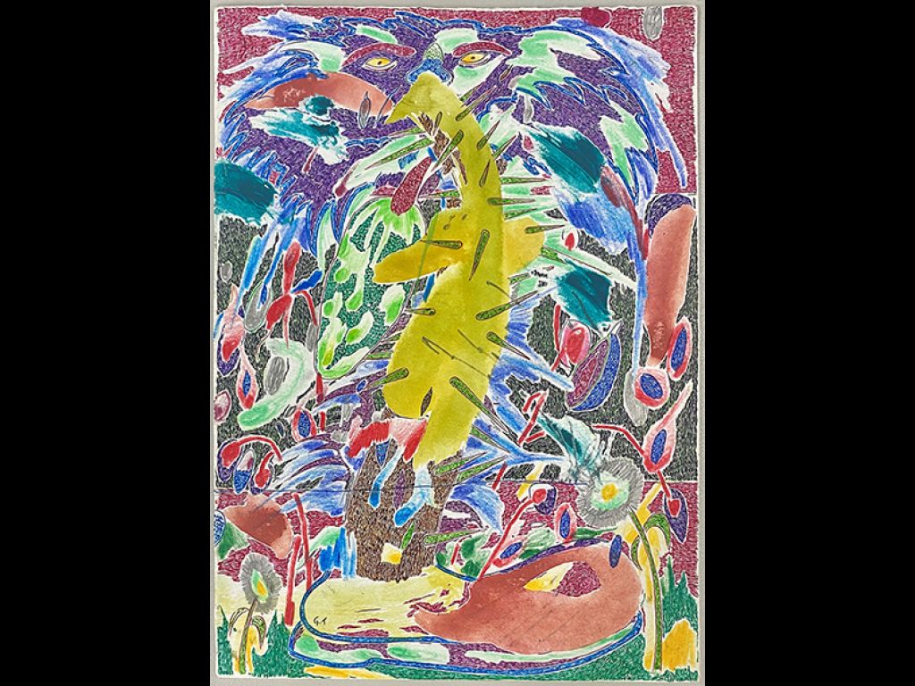 acrílica, lápis de cor e guache sobre papel