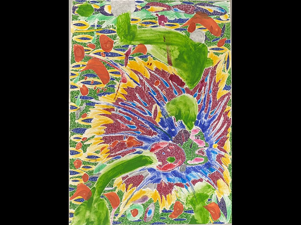 acrílica, lápis de cor e guache sobre papel